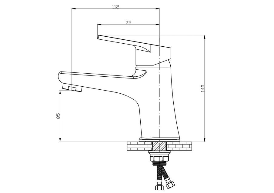 - Монтаж на одно отверстие с гибкой подводкой в комплекте (1/2");