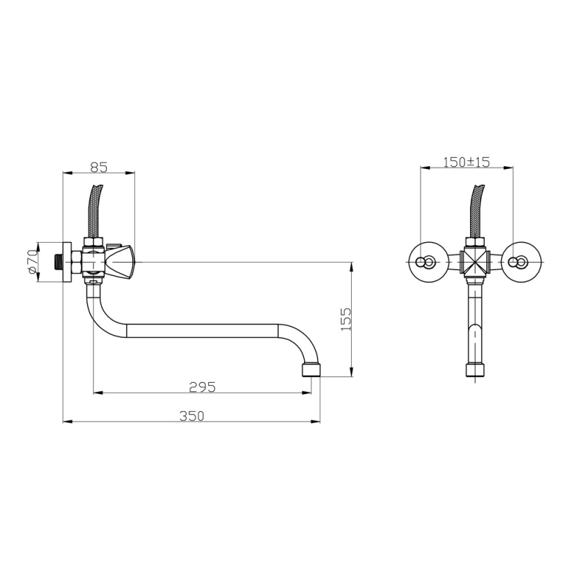 - Настенный монтаж на два отверстия с межосевым расстоянием 150 мм;