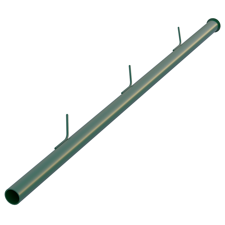 Круглый столб диаметром 42мм применяется при монтаже заборов из сетки-рабицы. Представляет собой стальную круглую трубу с покрытием эмаль-грунт зеленого цвета, к которой приварены 3 крючка. Крючки применяются для закрепления сетки рабицы.