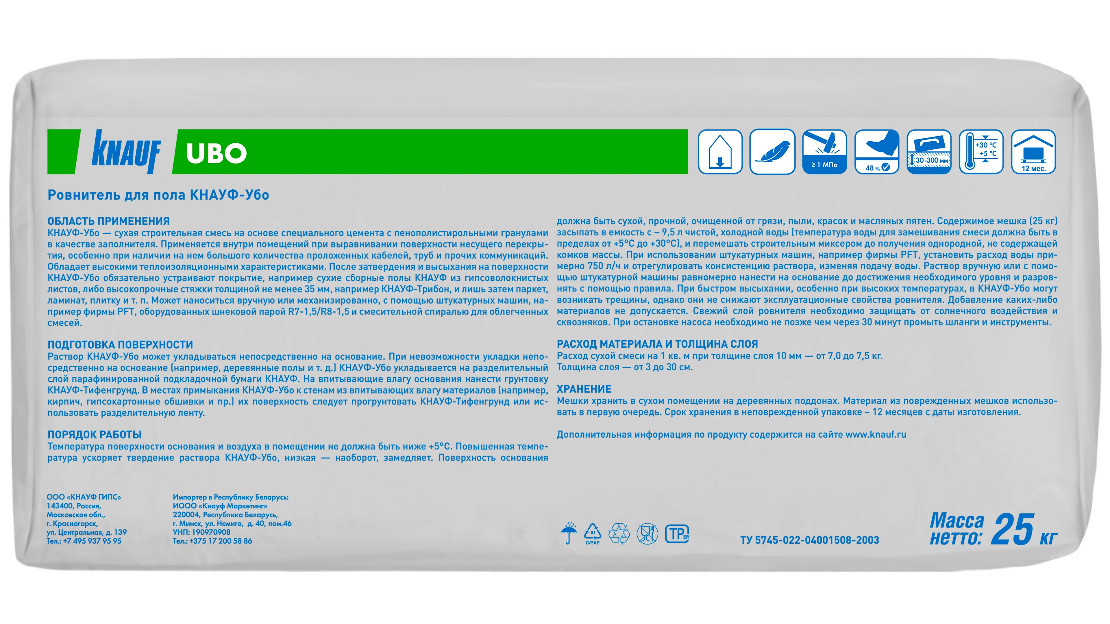 | Объем упаковки, л/кг: | 25 |