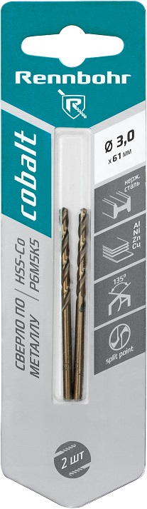 Сверло по металлу кобальтовое Rennbohr COBALT 3 х 61 мм (2шт/уп)
