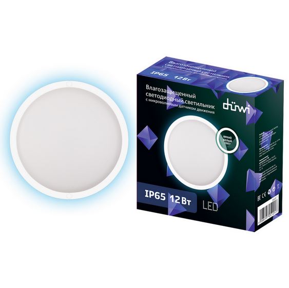 Светильник светодиодный СПП 12Вт 4000К 960Лм 220В накладной матовый Круг IP65 с датчиком применяется для освещения любых помещений (производственных, административных, медицинских и т.п.), а также для наружного освещения.