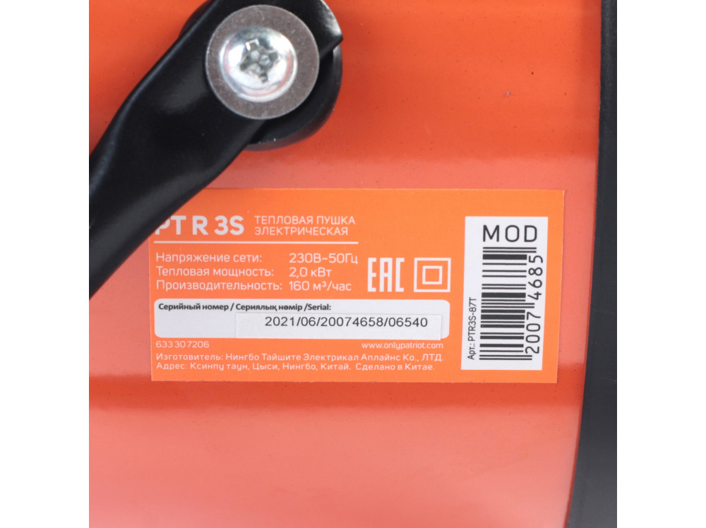 Пушка тепловая электрическая PATRIOT 2000 Вт с терморегулятором PTR 3S