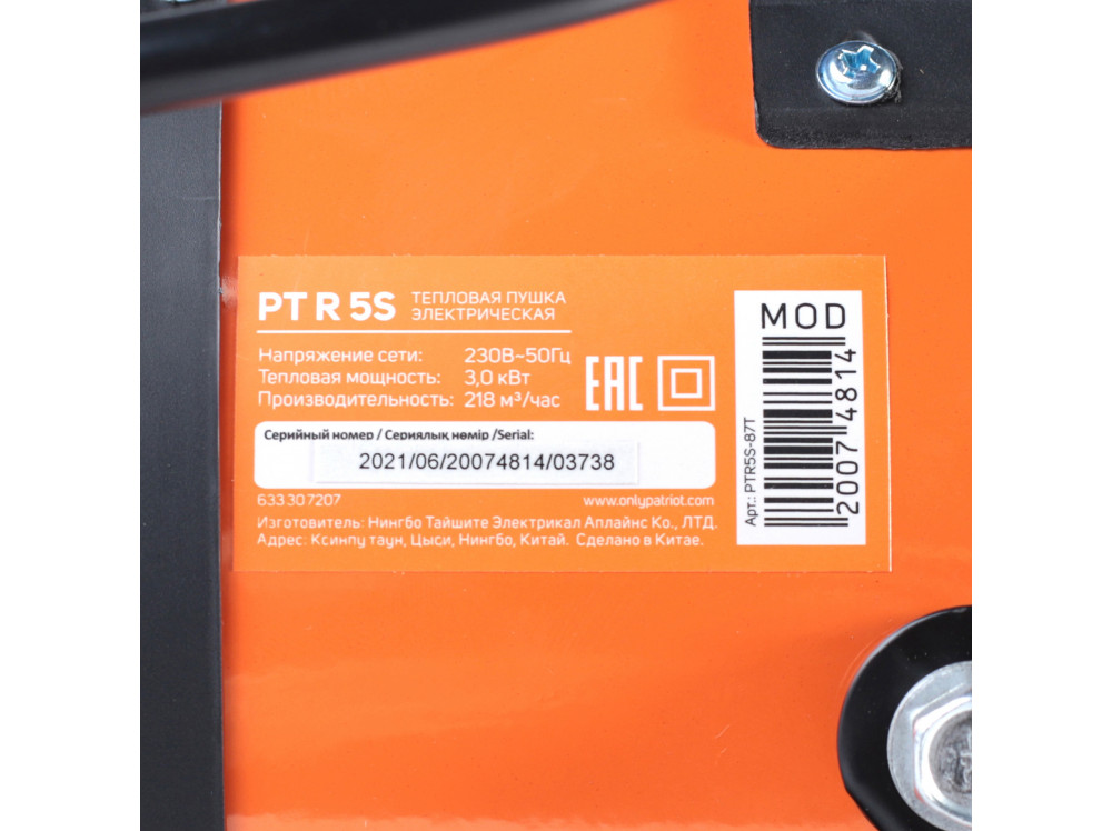 Пушка тепловая электрическая PATRIOT 3000 Вт с терморегулятором PTR 5S