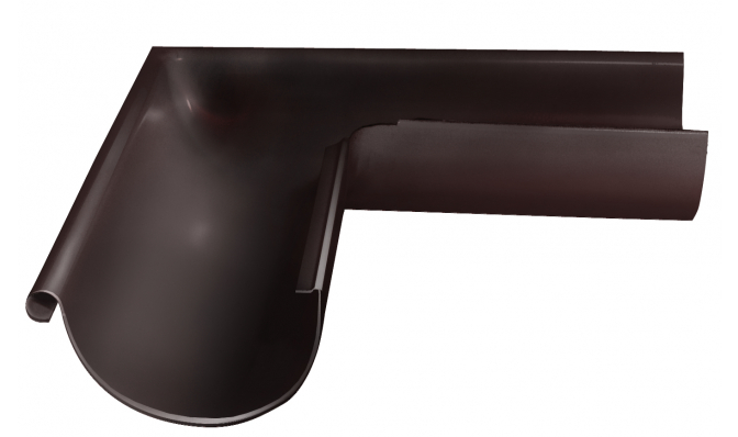 Внешний угол желоба - это элемент водосточной системы, предназначенный для изменения направления движения воды по водосточному желобу и монтируется на внешних углах кровли. Угол желоба производится бесшовным способом, что обеспечивает жесткость, герметичность и отличную гидродинамику.