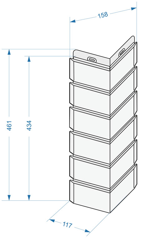 Наружные углы для фасадных панелей Docke Berg используются для облицовки внешних углов зданий и соответствуют панелям по фактуре и по цветам. Углы необходимо устанавливать последовательно после завершения монтажа каждого ряда. Нижний угол ставится на стартовый угол, соответствующий коллекции панелей.