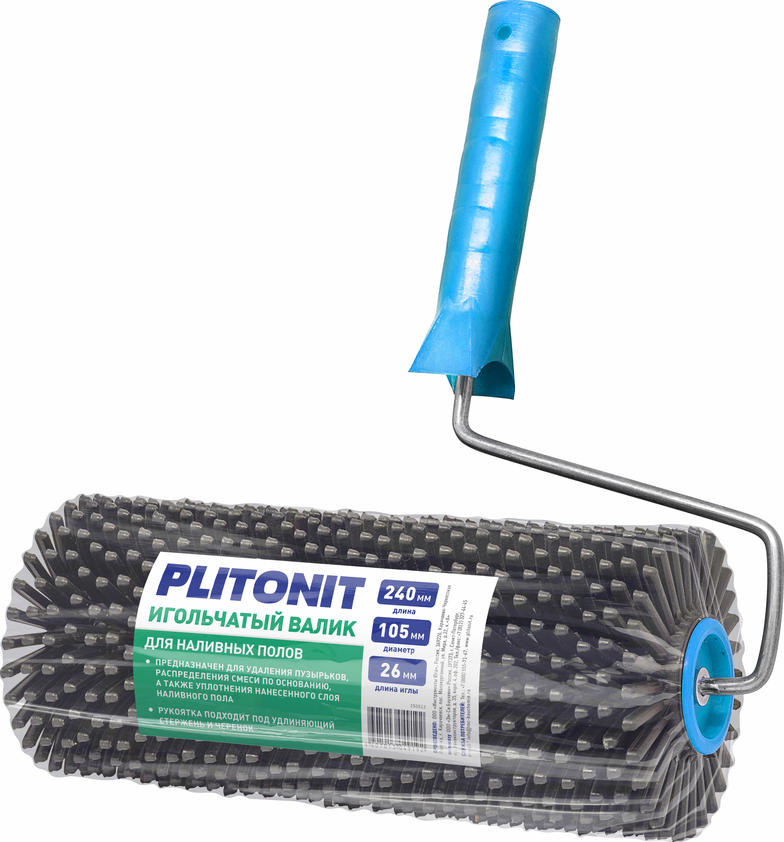 • Игольчатый Валик Плитонит предназначен для удаления воздуха из слоя наливного пола, для помощи распределения смеси по основанию и для уплотнения нанесенного слоя