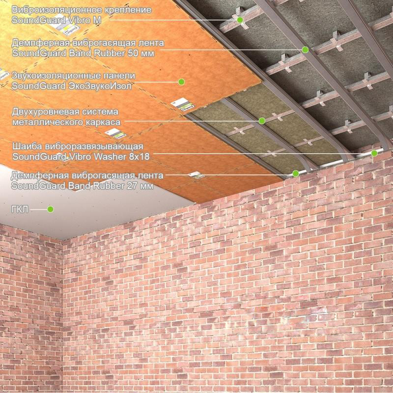 Делали шумоизоляцию потолка на металлическом каркасе. Использовали виброподвесы универсальный SoundGuard Vibro M 130 х 40 х 60 мм для крепления профиля. Впечатлен результатом, шума от соседей практически не слышно
