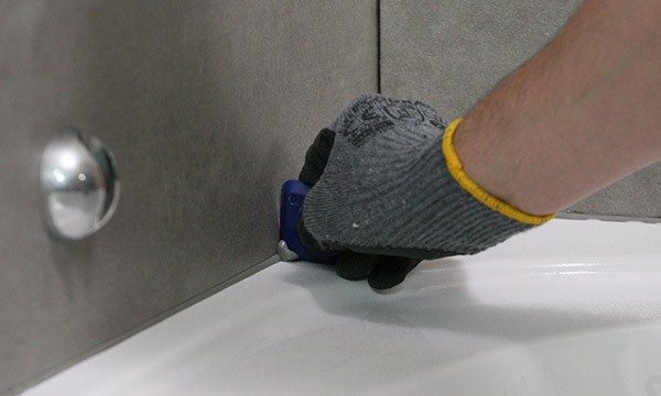 Не позднее 15 минут после выполнения работ по заполнению шва, его следует смочить мыльной водой, загладить влажным шпателем, тем самым убрав излишки затирки. Сразу после заглаживания удалить малярную ленту.
